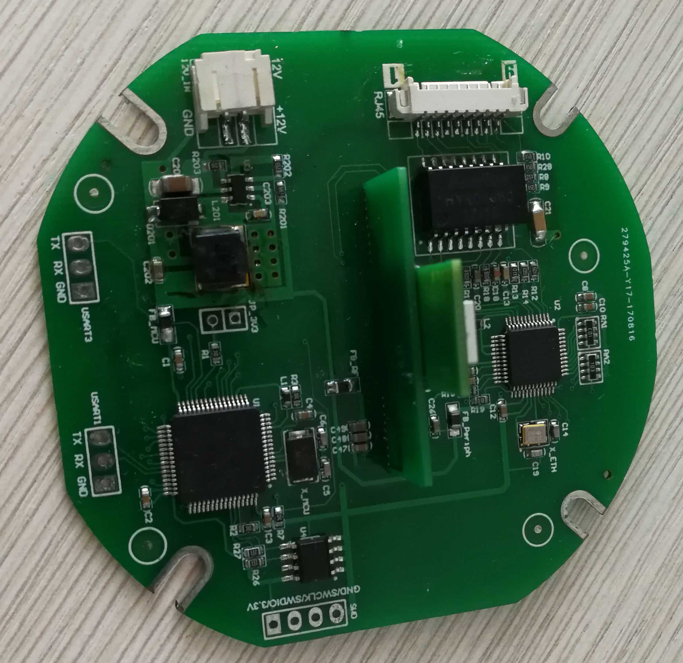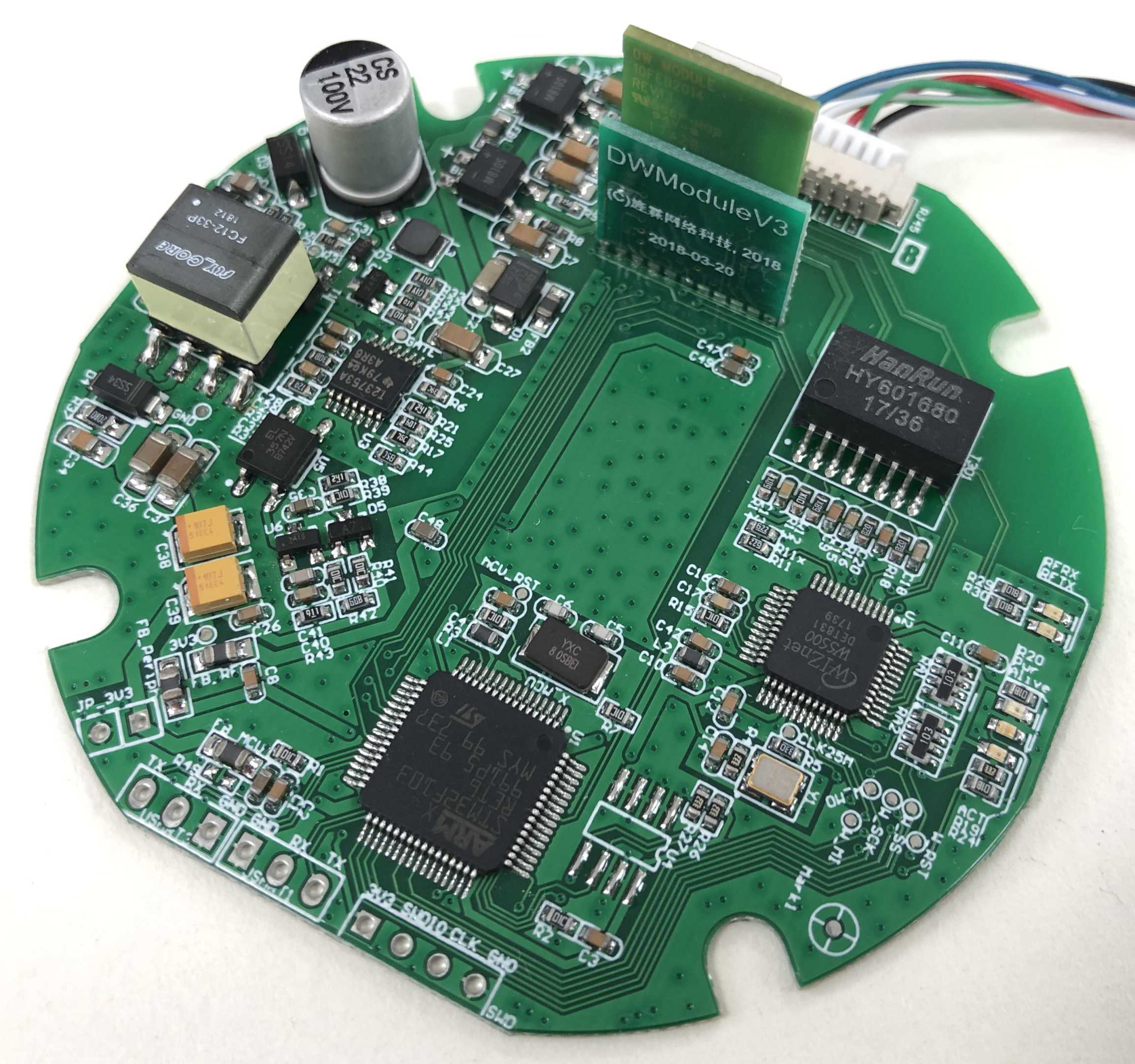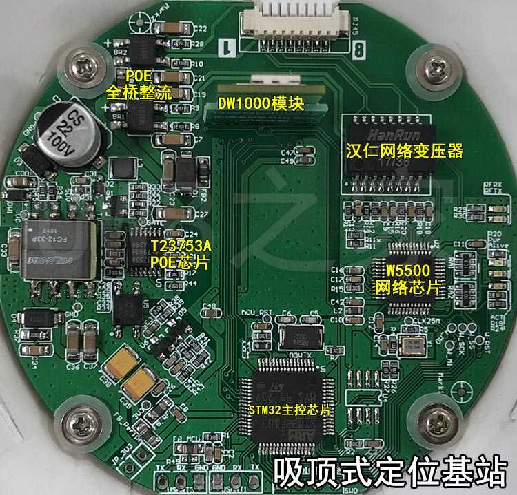 This anchor has evolved through dozens of versions from the initial basic version. The main control MCU is STM32F103RET6, the network chip is W5500, and the UWB chip is DW1000. These three chips remain unchanged, and we have achieved firmware compatibility, which is compatible no matter how the hardware version changes or the firmware version changes.