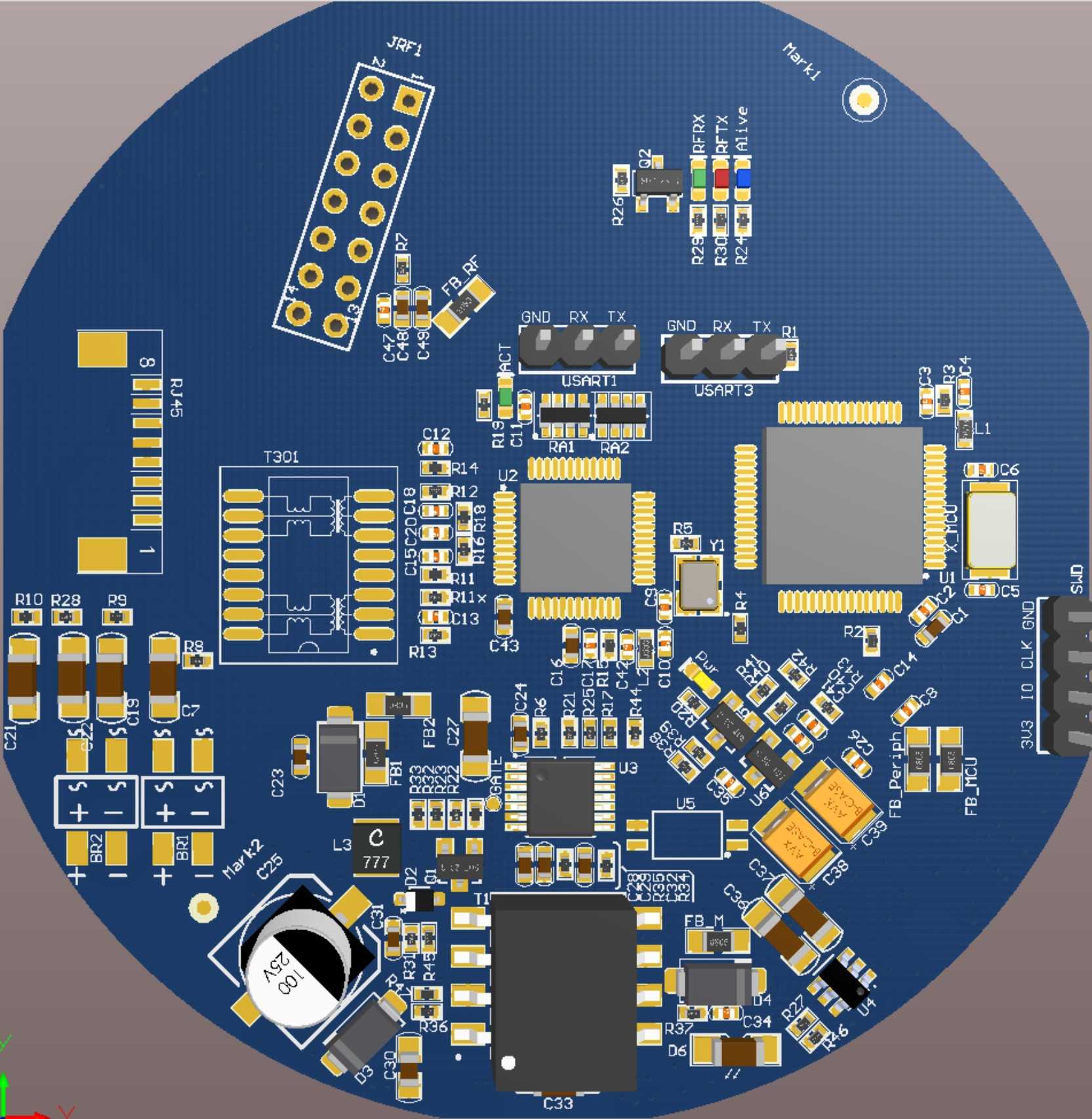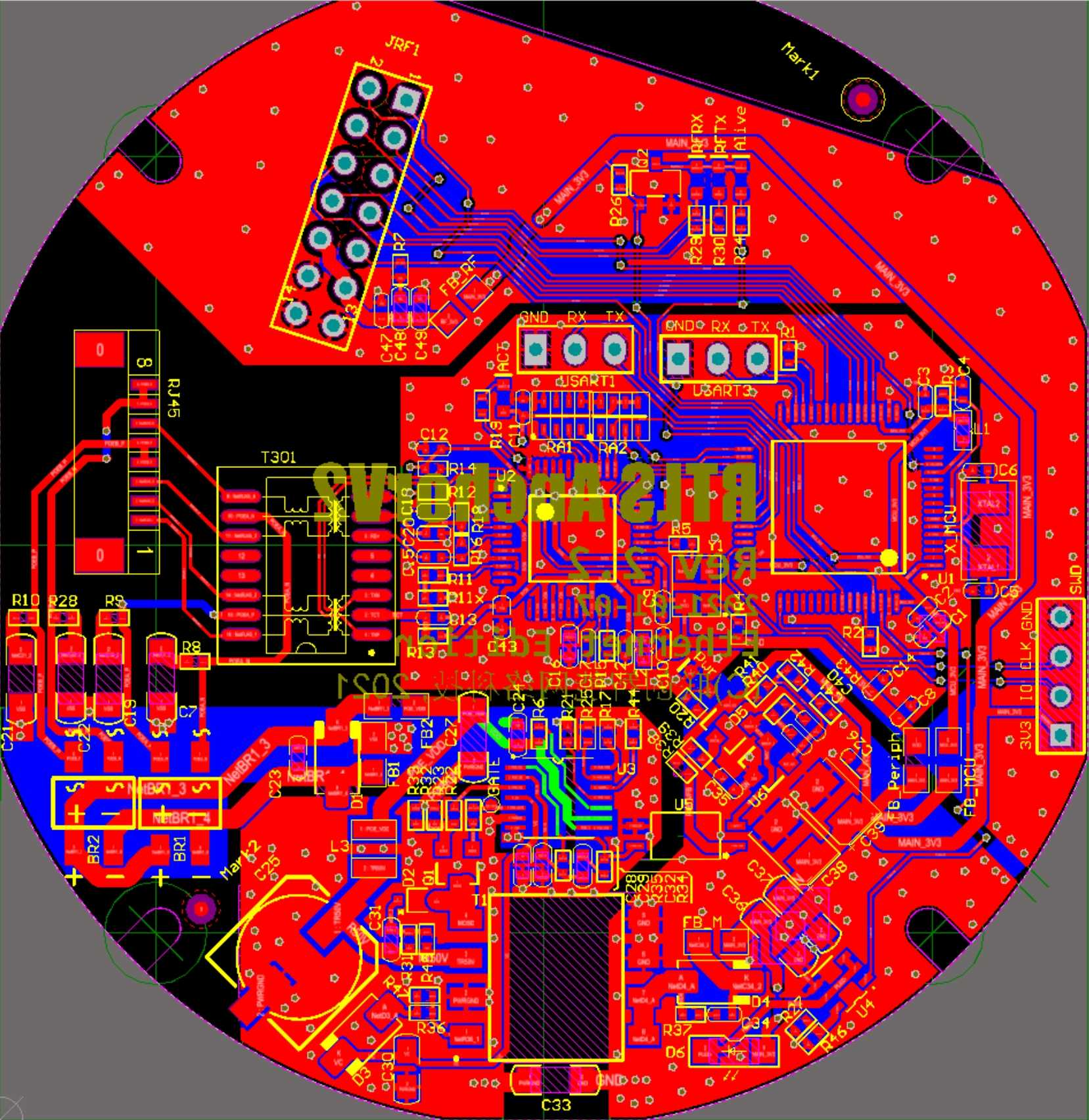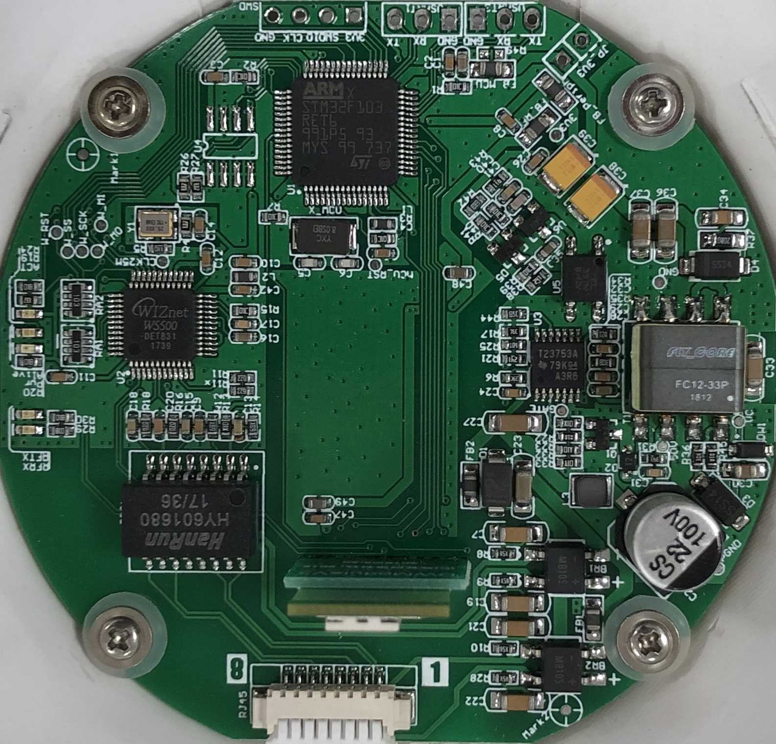 This anchor has evolved through dozens of versions from the initial basic version. The main control MCU is STM32F103RET6, the network chip is W5500, and the UWB chip is DW1000. These three chips remain unchanged, and we have achieved firmware compatibility, which is compatible no matter how the hardware version changes or the firmware version changes.
