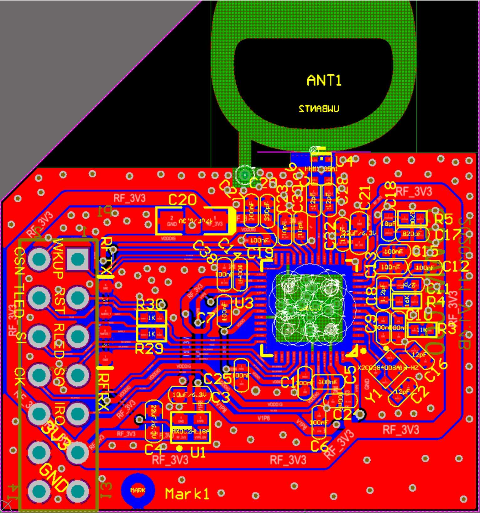 We designed the PCB antenna according to the diagram provided by the original DecaWave factory. In fact, this structure of the antenna is not used in our products. If it's built-in, it's too big; if it's external, it's better to use a fiberglass antenna.