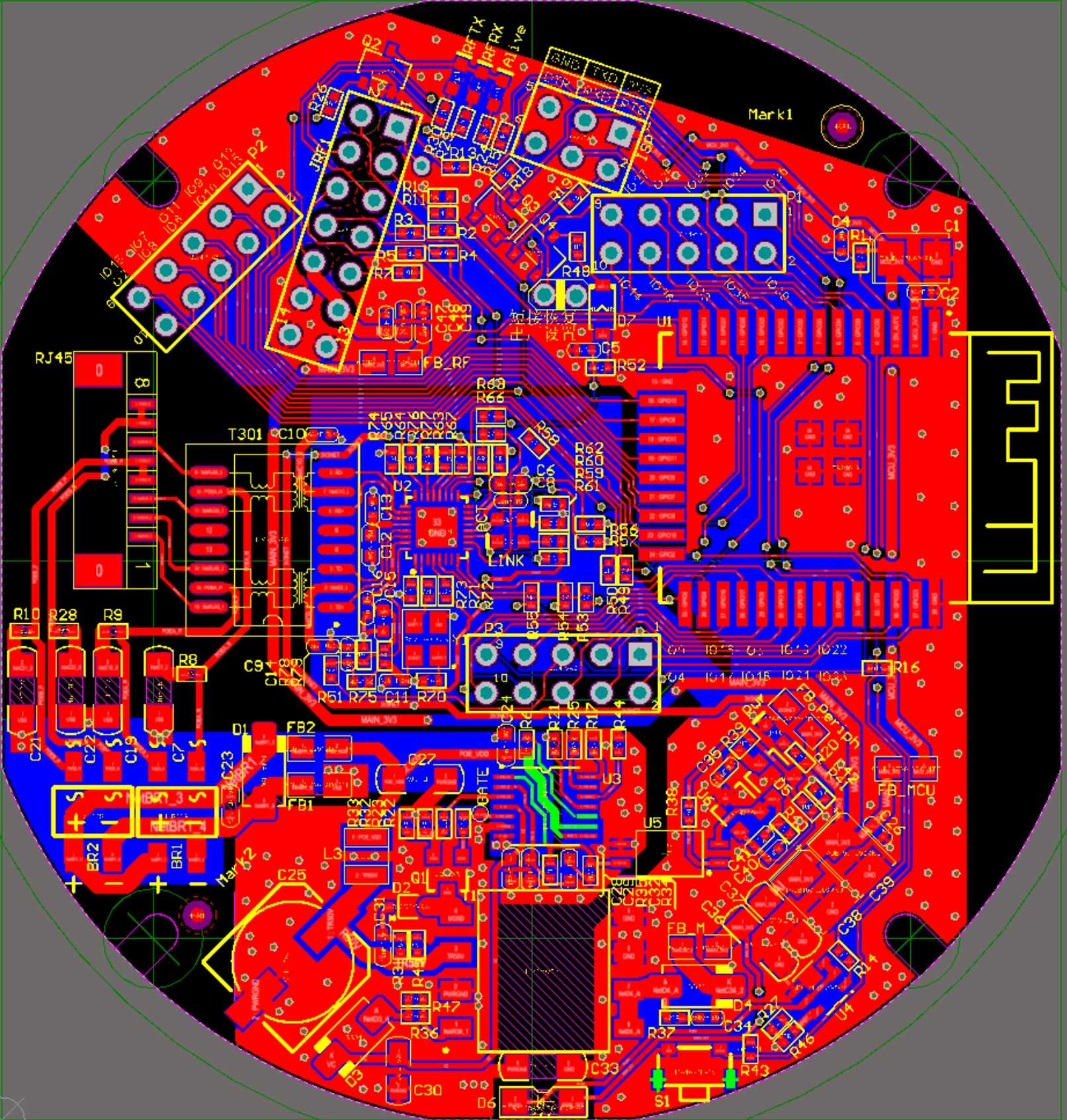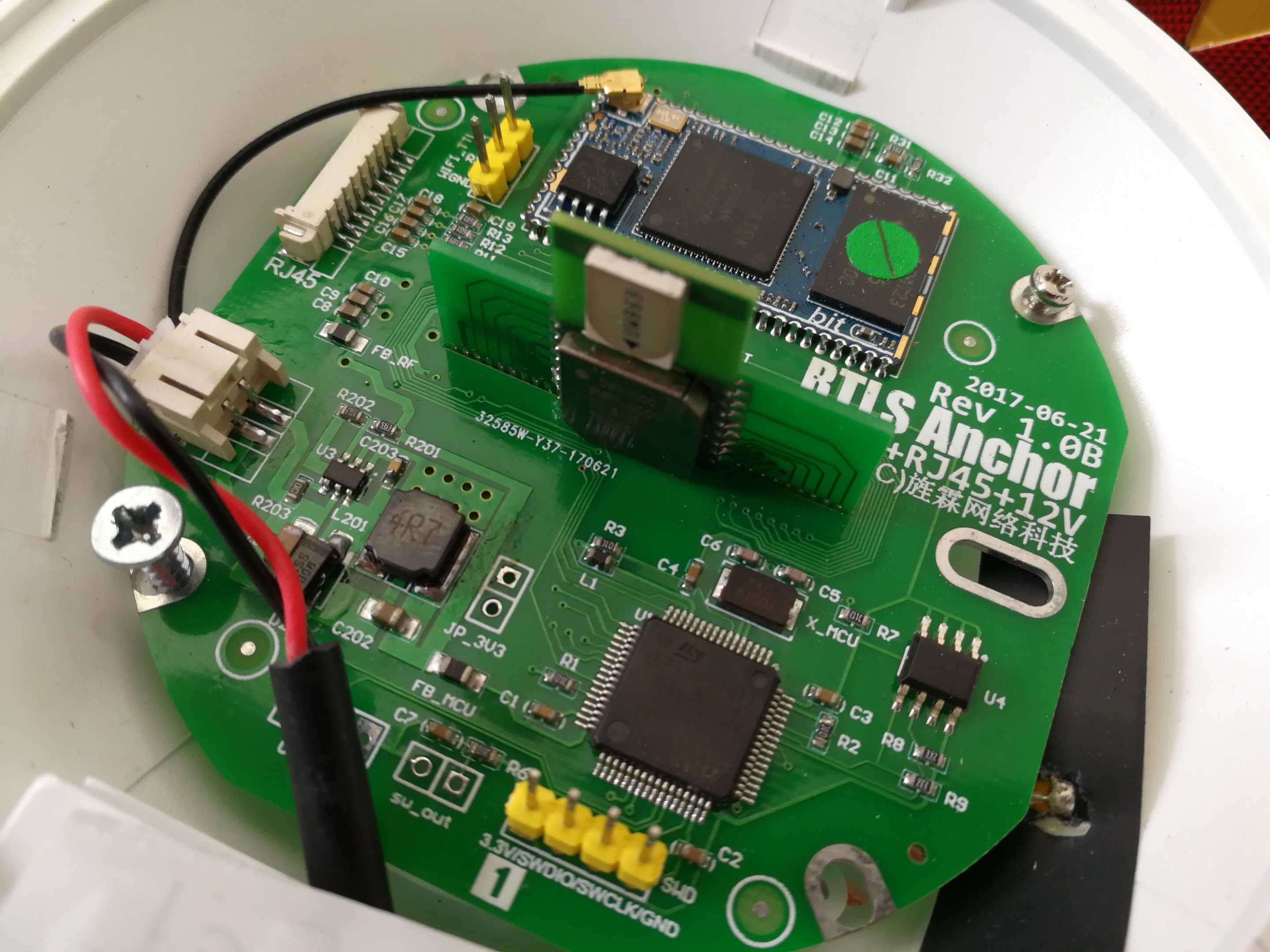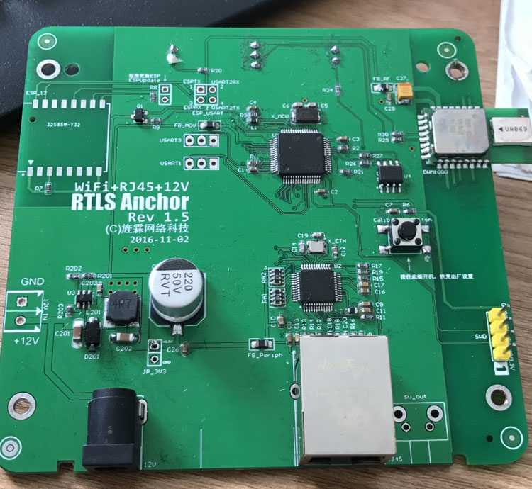 Later, we plan to use ESP32 as the WIFI interface and also use ESP32 as the main control MCU, so that STM32 and W5500 can be eliminated. On the one hand, it can save costs, on the other hand, it can support both WIFI and Ethernet. If the MCU is replaced, the anchor firmware needs to be completely rewritten, which is a bit of a workload. Not long after this plan was launched, the company decided to stop the project, and the research and development of new anchors was also suspended. The picture below is the new anchor PCB using ESP32 as the main control.